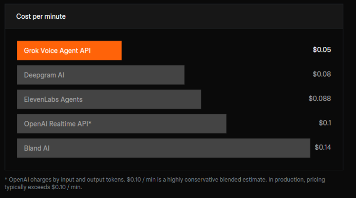 接続時間1分あたり0.05ドルの単一フラットレートで課金される。これはOpenAI Realtime APIの推定0.10ドル/分、Deepgram AIの0.08ドル/分、ElevenLabs Agentsの0.088ドル/分、Bland AIの0.14ドル/分と比較して業界最安値となっている。