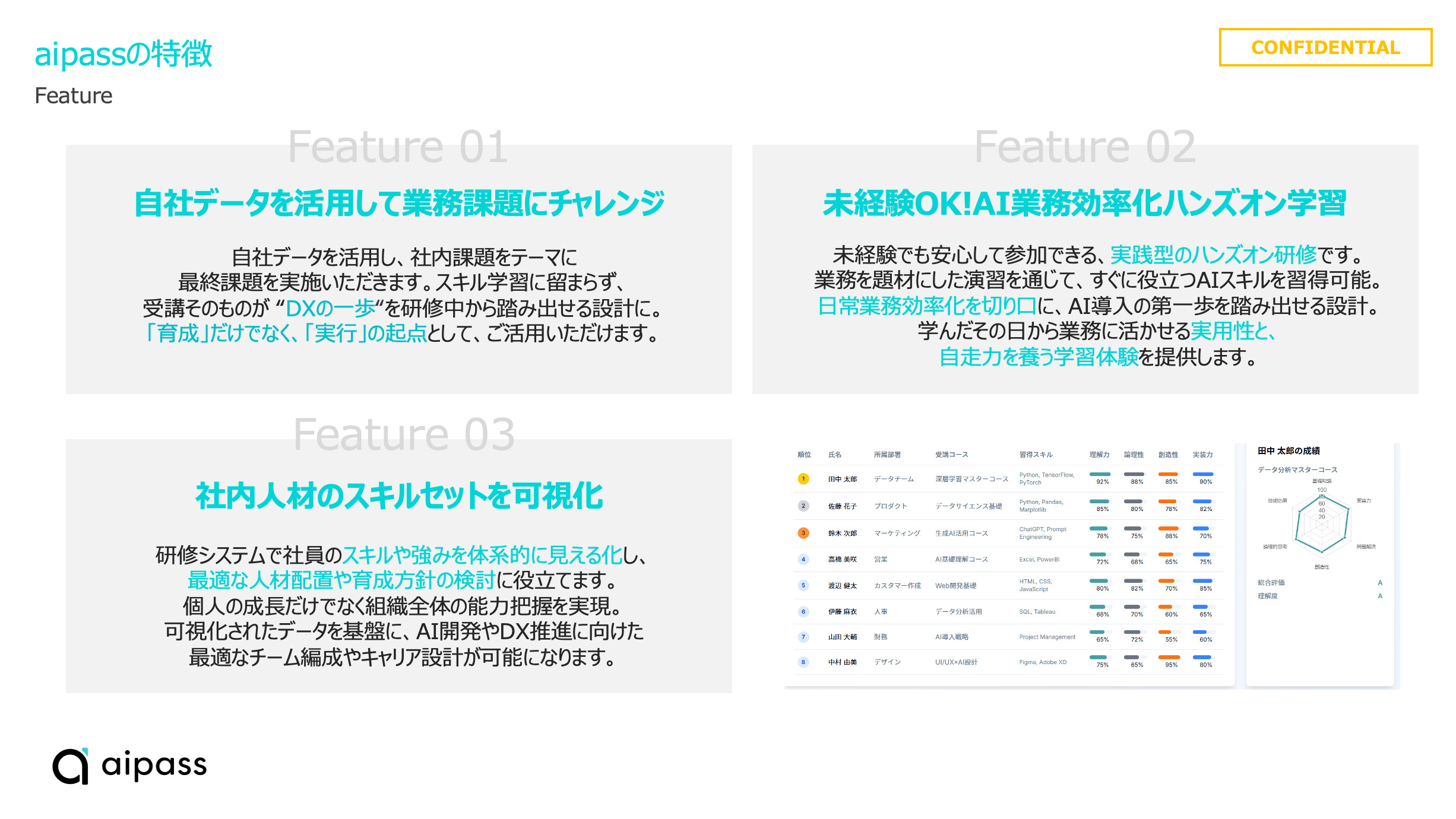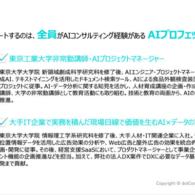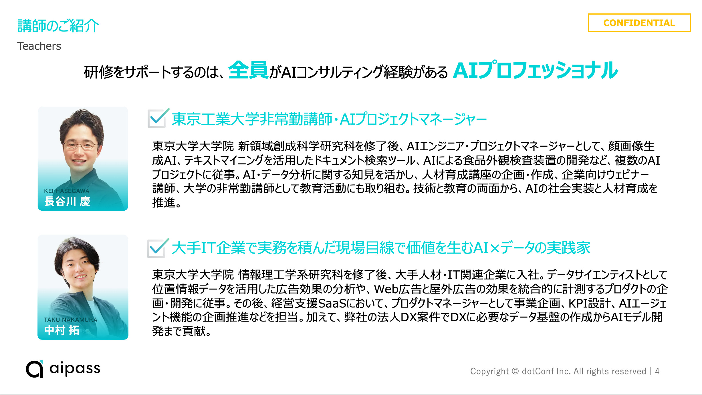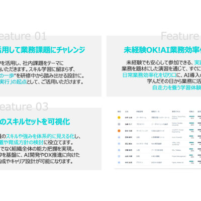 短時間のセミナー形式で実施できるため、経営層から現場社員まで幅広く参加可能。AIを“特別なもの”ではなく、“業務を助ける身近なツール”として社内に浸透させるきっかけをつくります。