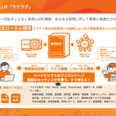 クラウドを使わず社内ネットワーク内で完結するローカルLLMです。
