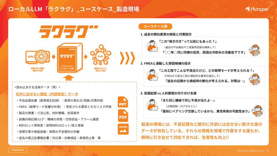 クラウドを使わず社内ネットワーク内で完結するローカルLLMです。