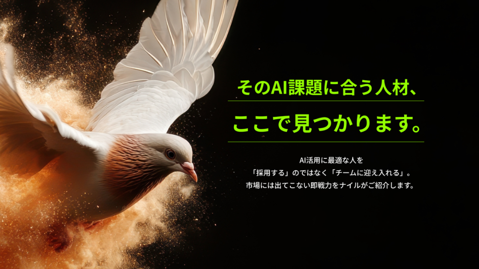 AI開発・導入の経験豊富なプロフェッショナル(Google、アクセンチュア等の出身者含む)を、企業の課題に合わせて「プロジェクト単位」で紹介・参画させるサービスです。
