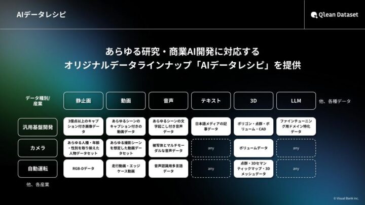 GENIACに採択されたVisual Bankの「Qlean Dataset」は、創業40年の権利処理の歴史を持つアマナイメージズが監修したAI開発用データのプロフェッショナルソリューション。