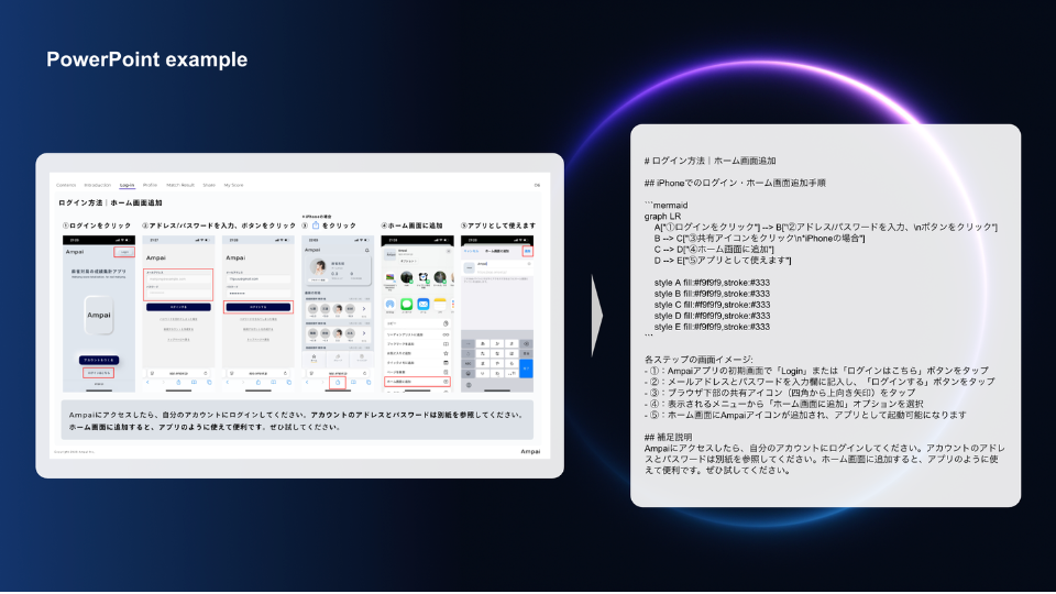 ・PowerPointの表・図解・スライド構成 → 同じことを説明するプレインテキスト
