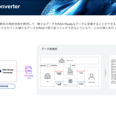 RAG Ready Converter は独自の特許技術により、単に文字起こしをするOCRとは違い、画像などで説明されている情報についても、同様の情報が伝わるようなRAG Readyなプレーンテキストに変換する解釈まで対応しているデータコンバーターです。