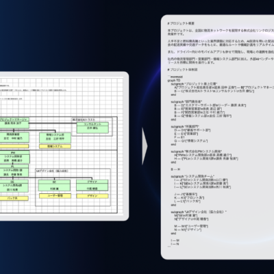 ・画像内の構成図やフローチャート → Mermaid記法等で論理構造を崩さずテキストに変換3APIとGUI両対応で御社の環境にすぐ導入可能