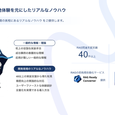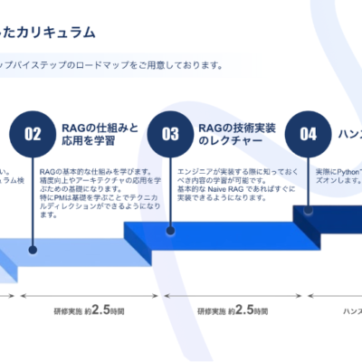 40社以上のRAG開発支援で培った実践ノウハウを体系的に学べる技術研修プログラムです。