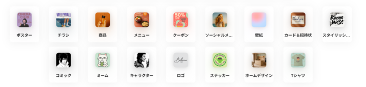 これらのテンプレートはクリックするだけで編集画面に進めるため、ゼロからデザインを作る必要がありません。完成イメージに近いテンプレートを選んでから調整できるため、短時間でも見栄えのよい画像を作りやすいのが特徴です。