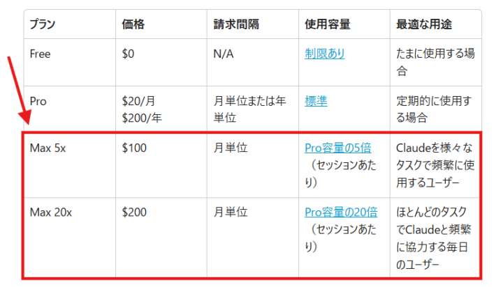 料金プランは、随時変更の可能性があるので、Claudeの公式サイトでご確認ください。
